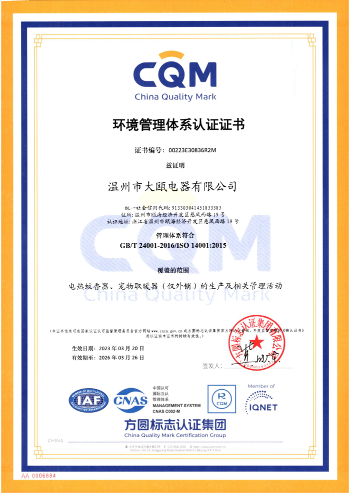 秉承“以人為本,以質取勝”的經營理念,三十余載櫛風沐雨,踐行“成就客戶、價值為本、誠信務實、追求卓越”的核心價值觀。大甌公司堅持以產研一體化的經營模式與差異化的競爭戰略為基點,持續推出細分市場上的多種類產品,豐富產品矩陣,滿足消費者多樣化需求,助力新型驅蚊行業高速發展。